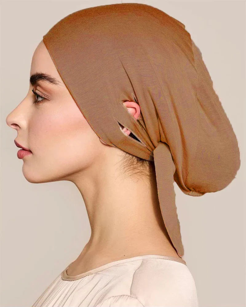 Das Tuch bietet zudem extra Freiraum für volles Haar. Der Bone kann auf der Rückseite gebunden werden, um an Kopfgröße und Komfortniveau anzupassen.