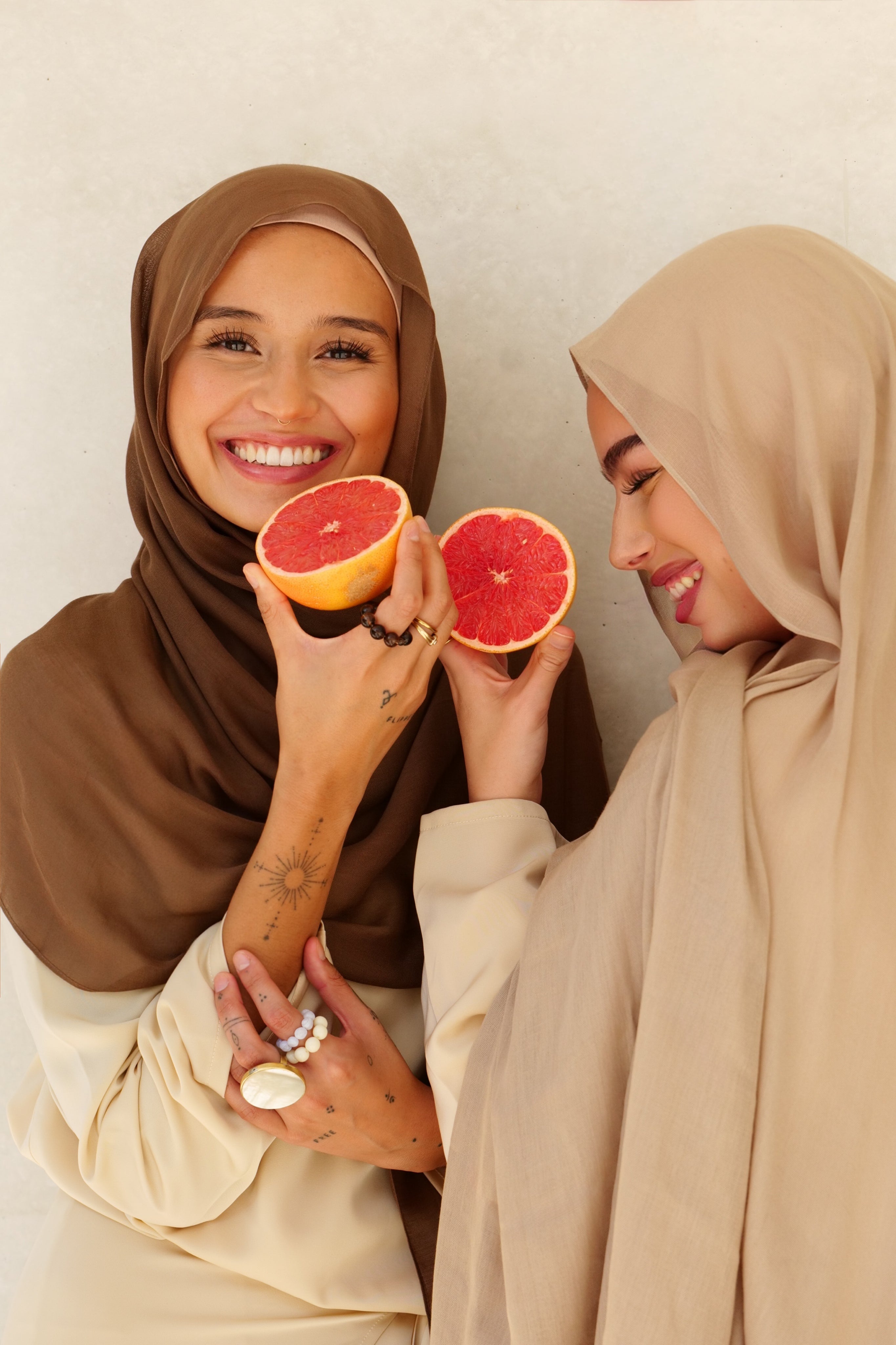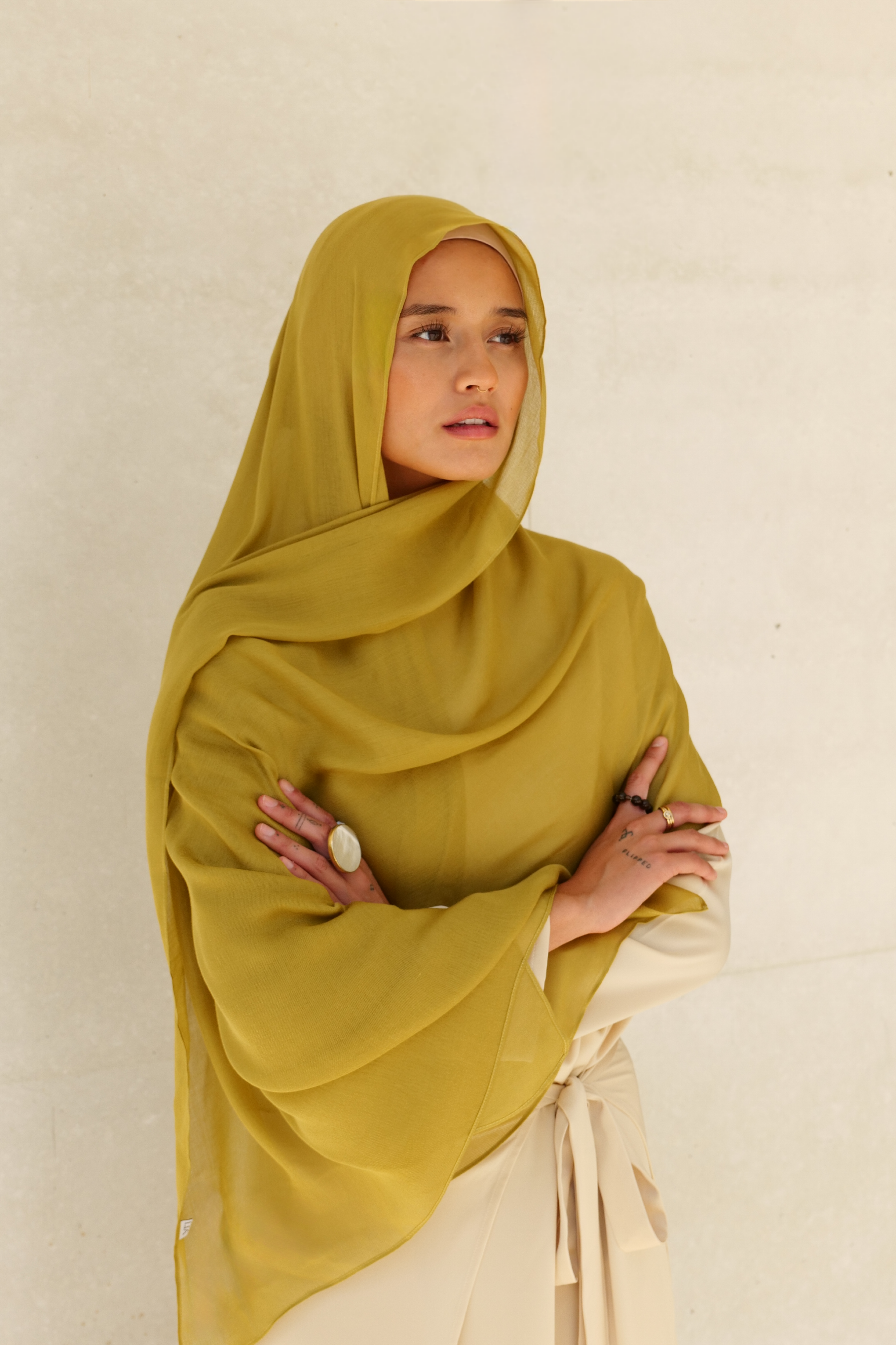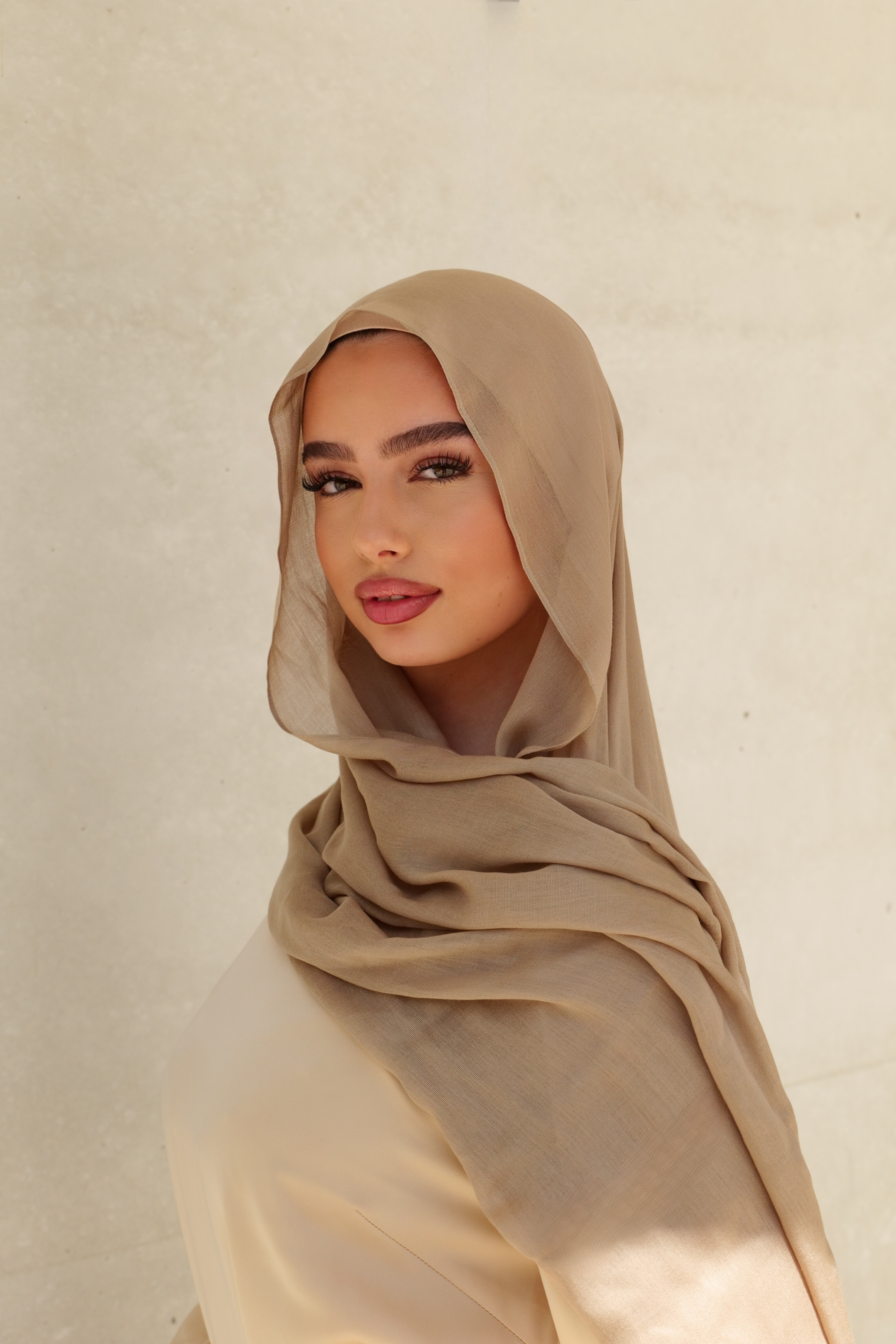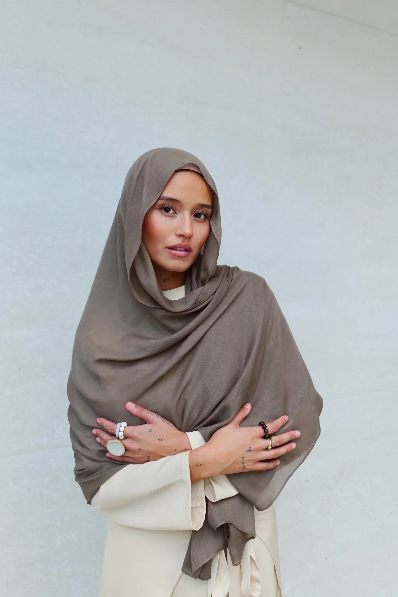 Ein Hijab für alle, die klare Linien, leichte Stoffe und ruhige Töne lieben. Zeitlos, luftig, schön.