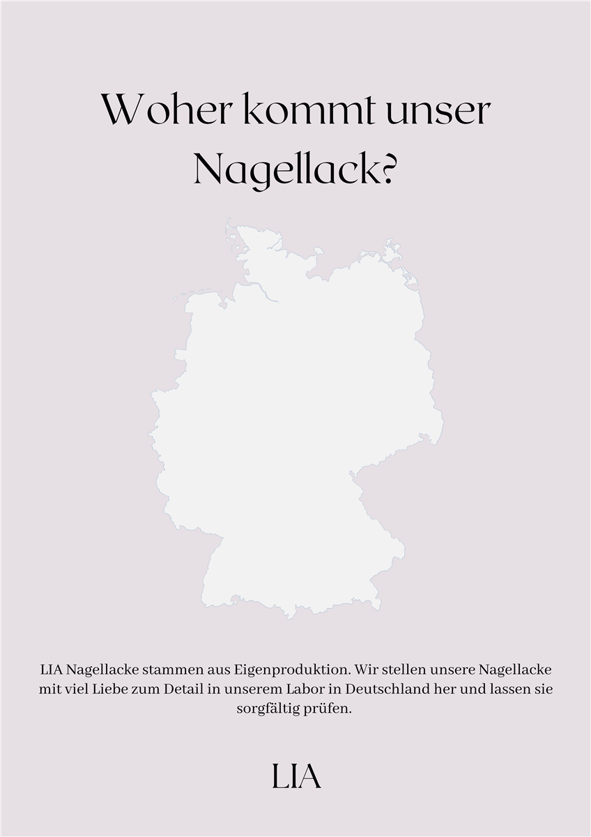 Weitere Eigenschaften unserer Nagellacke sind, dass sie frei von Formaldehyd, Dibutylphthalat (DBP), Xylol, Campher, Silikon, Mineralöl, Aceton und Toluol sind.