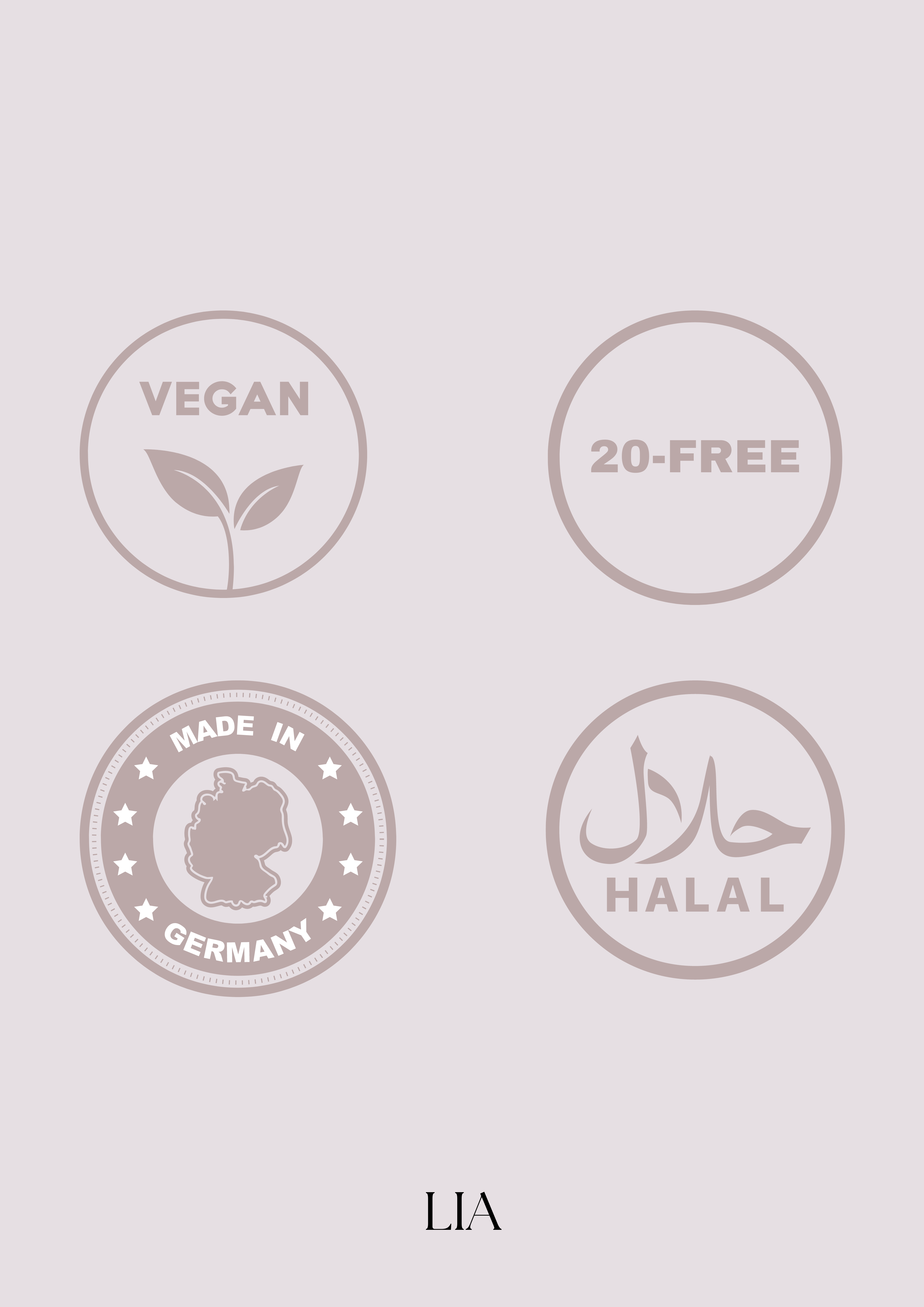 Entdecke unsere LIA Halal Nagellacke und ihre geniale Formel, die den Nagel verschönert, pflegt und schützt. Der Nagellack vereint hohe Farbintensität mit ultimativer Deckkraft, langem Halt und einer Textur, die sich spielend leicht gleichmäßig und streifenfrei auftragen lässt. Das Besondere an unserer Rezeptur liegt in der einzigartigen Molekularstruktur des Lackes, die aus wasserbasierten Inhaltsstoffen wie natürlichen Harzen und einem hoch entwickelten Polymer besteht. Das Polymer stellt eine ideale Verbindung zwischen Lack und Nagel her. Die Harze verwandeln in Kombination mit dem Polymer jede Lackschicht in einen glatten und hochglänzenden Film. Unsere Nagellacke bilden während des Trocknungsvorganges eine poröse Gitterstruktur, die für eine schnelle Wasser- sowie Sauerstoffdurchlässigkeit sorgt.